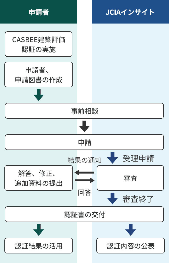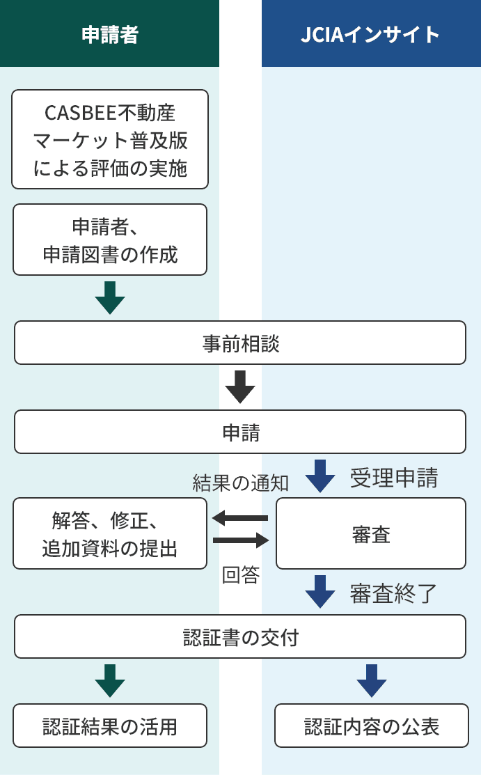 JCIAインサイトの不動産評価認証業務は、申請者が行った「申請関係図書」の認証評価を行います。